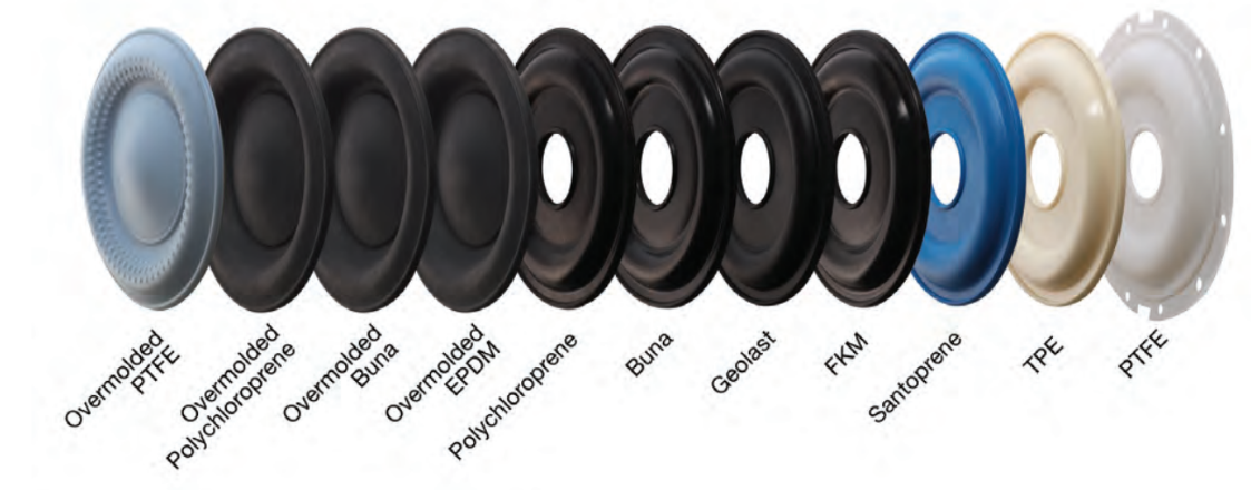 Có thể tham khảo và phân biệt các loại vật liệu màng bơm theo hình bên dưới: